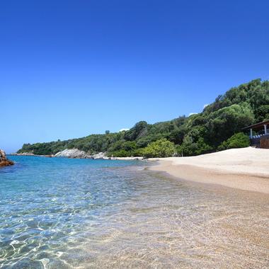 Les amateurs d’iode et de constellations de rochers, quant à eux, profiteront de l’autre restaurant situé sur la plage privée, la Paillote, pour se délecter de la pêche du jour (rouget, dorade, poulpe, Saint-Pierre…), tout en admirant le coucher de soleil, presque les pieds dans l’eau. La nuit venue, on s’émerveille devant ce décor de carte postale et ce lagon majestueux, illuminé par la ville de Propriano. Sans couvre-feu, nul doute que vous y passerez la soirée, et plus encore.