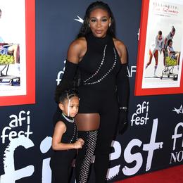 Le duo mère-fille avait revêtu la même tenue lors de l’avant-première pour La Méthode Williams : des combinaisons noires, sans manches et ornées de strass signées David Koma. (Hollywood, le 14 novembre 2021.)