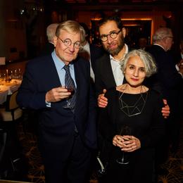 Maître Jean-Claude Binoche, Daniel Bernard, Roxana Azimi, journaliste (Dîner d’anniversaire de l’agence Moinard Bétaille, Paris, le 24 novembre 2021.)