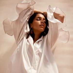 Chemise en coton, Ellery. Boucles d’oreilles, Balenciaga.