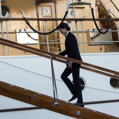 Pour fêter sa majorité, ses parents, le prince Joachim de Danemark et Alexandra Manley, ont organisé un dîner sur le yacht de la famille royale, le Dannebrog. (Copenhague, 28 août 2017.)