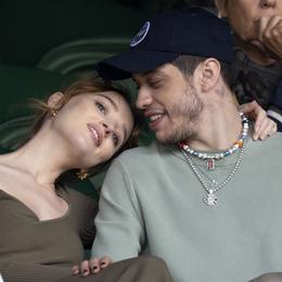 Pete Davidson et Phoebe Dynevor lors d’un match de tennisde Wimbledon. (Londres, 3 juillet 2021.)