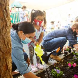 Les mains vertes de Meghan Markle et du prince Harry. (Los Angeles, le 1er septembres 2020.)