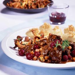 Voir la recette du civet de chevreuil aux cranberries et aux girolles.