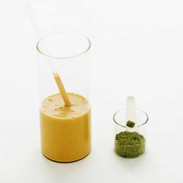 Pour faire le plein d’énergie, rien de tel qu’un verre de smoothie à l’abricot et au thé matcha.
