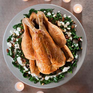 Pour réussir avec succès votre chapon, le servir avec des épinards frais et du riz basmati.