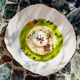 Voir la recette du risotto et crème de petit-pois.