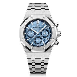 Montre Royal Oak Chronographe, 38mm, mouvement automatique, boîtier et bracelet en acier, Audemars Piguet, prix sur demande. Renseignements sur Audemarspiguet.com