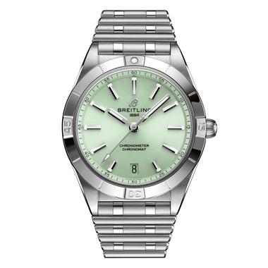 Flashback, c’était le 1er septembre dernier et la manufacture Rolex surprenait en dévoilant une gamme d’Oyster Perpetual aux couleur pop, aux côtés de ses néo Submariner stars. Des couleurs audacieuses qui faisaient revivre les grandes heures des montres Stella, dont les cadrans en émail pop ont rythmé les années 1970, jusqu’à devenir collector aujourd’hui. Quelques mois se sont écoulés depuis et c’est au tour d’un autre grand nom de l’horlogerie, Breitling, de repenser sa Chronomat sport de 1984 dans une version féminine en 36 et 32 mm. Le plus ? La nouvelle palette couleur menthe à l’eau aussi douce que lumineuse qui vient éclairer ce petit précis d’élégance.