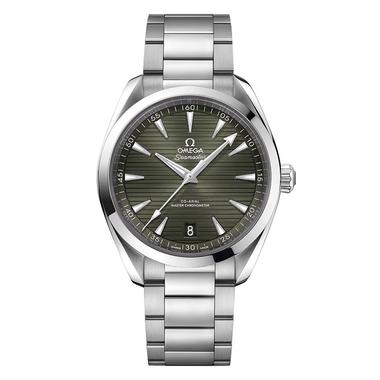 Montre Seamaster Aqua Terra, 41mm, mouvement automatique. Boîtier et bracelet en acier, cadran vert, Omega, 5400 €. Disponible sur Omegawatches.com