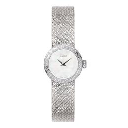 Montre Mini D de Dior Satine, 19mm, mouvement quartz, boîtier et bracelet en acier, Dior Horlogerie, 2800 €. Disponible sur Dior.com