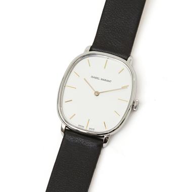 Montre 28.07, mouvement quartz, boîtier en acier, bracelet cuir, Isabel Marant, 550 €. Disponible sur Isabelmarant.com