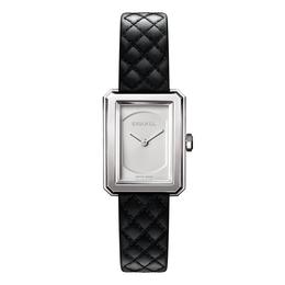Montre Boy.Friend, mouvement quartz, boîtier en acier, bracelet matelassé interchangeable, Chanel Horlogerie, prix sur demande. Renseignements sur Chanel.com