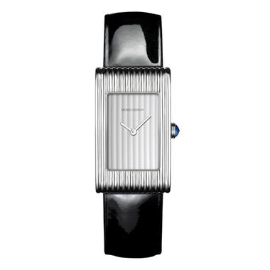 Montre Reflet Medium, 21mm, mouvement quartz, boîtier en acier, cadran godron, bracelet interchangeable, Boucheron, 3340 €. Disponible sur Boucheron.com