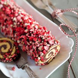Voir la recette de la buche de Noël aux pralines roses.