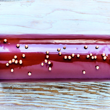 Les pralines roses sont aussi belles que bonnes. Elles rajoutent une touche de couleur à cette bûche au chocolat noir et praliné.