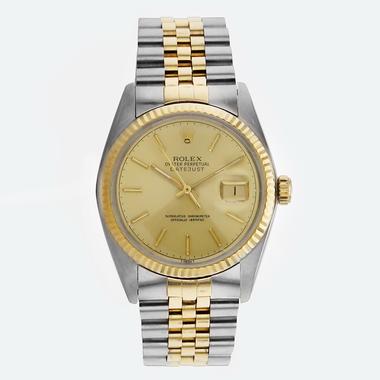 Montre Datejust en or jaune, cadran « Gilt », circa 1968, Rolex, 7550 € sur Collector Square.
