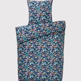 Parure de lit imprimée jungle en popeline, couleur bleu médiéval, 55,90 €, Petit Bateau.