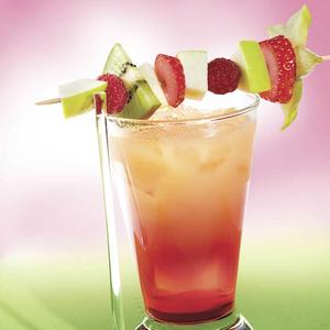 Voir la recette du cocktail sans alcool poires, pommes et framboises.