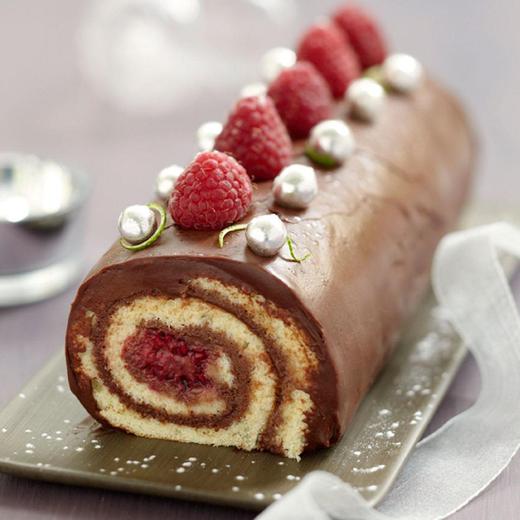 Cette bûche délicieuse mélange les saveurs de chocolat, framboise, noix de coco et citron vert. Une association acidulée et gourmande.