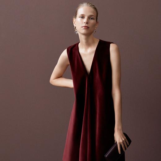 Robe en velours bordeaux, COS, 115 €. Disponible sur cosstores.com.