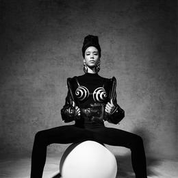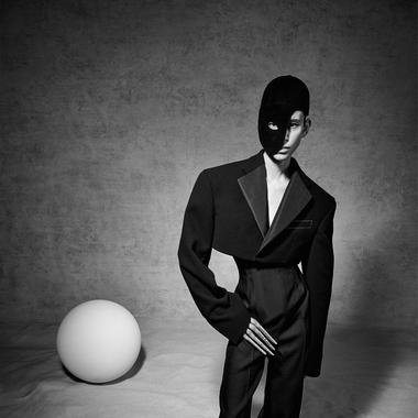 «Atteindre le même niveau d’intensité et de surnaturel qu’avant la pandémie en renonçant à la couleur et au volume» : peut-on paramétrer la fantaisie, avoir une approche cérébrale de l’émotion, rationaliser le surréalisme ? Daniel Roseberry, directeur artistique de Schiaparelli depuis 2019, y croit, et nous aussi face à sa puissante collection : 32 tenues offrant au noir (velours et humour) un règne quasi sans partage, et distillant des touches surréalistes, robe-cage, souliers d’or aux orteils en trompe-l’œil, bustier cosmique entouré des anneaux de Saturne, robe-présentoir de joaillerie, baguette de pain en or évoquant la phallique Fillette de la plasticienne Louise Bourgeois, et bien sûr, les seins coniques iconiques…