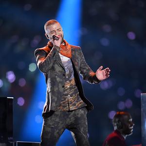 Justin Timberlake craignait d’attraper froid lors de la mi-temps du Super Bowl 2018. Alors c’est en total look Stella McCartney et petit bandana safran qu’il a fait le show dimanche 4 février. (Minneapolis, le 4 février 2018.)