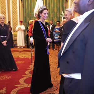 La duchesse de Cambridge porte la tiare de Lady Diana et opte pour une robe en velours bleue nuit Alexander McQueen. (Londres, le 11 décembre 2019.)