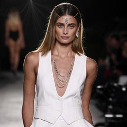 Sur le podium installé à l’hôtel Ritz Paris, et au son de La Vie En Rose chanté par Grace Jones, ses amies de toujours, de Constance Jablonski à Cindy Bruna, sans oublier Edita Vilkeviciute qui avait incarné ses collections il y a peu. Le front row rassemblait clientes, journalistes, stars amies de la maison sans oublier son père, le diamantaire André Messika.